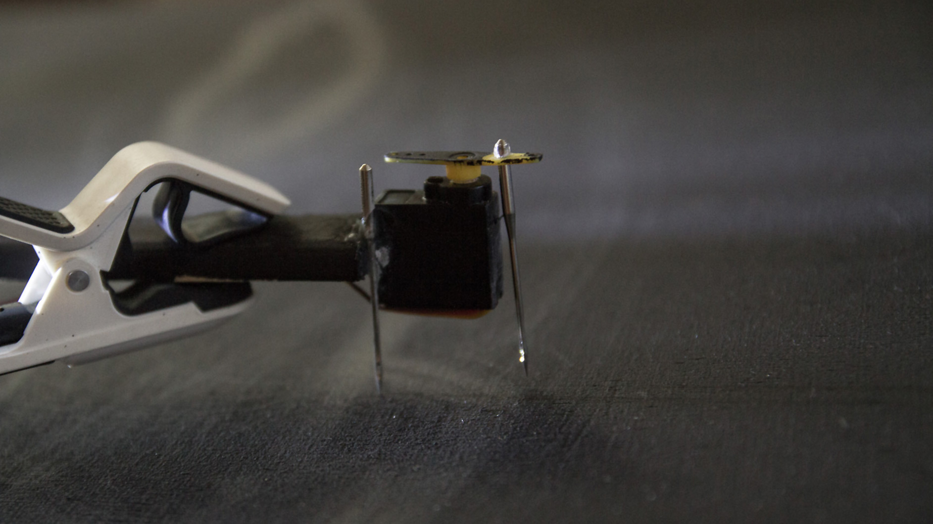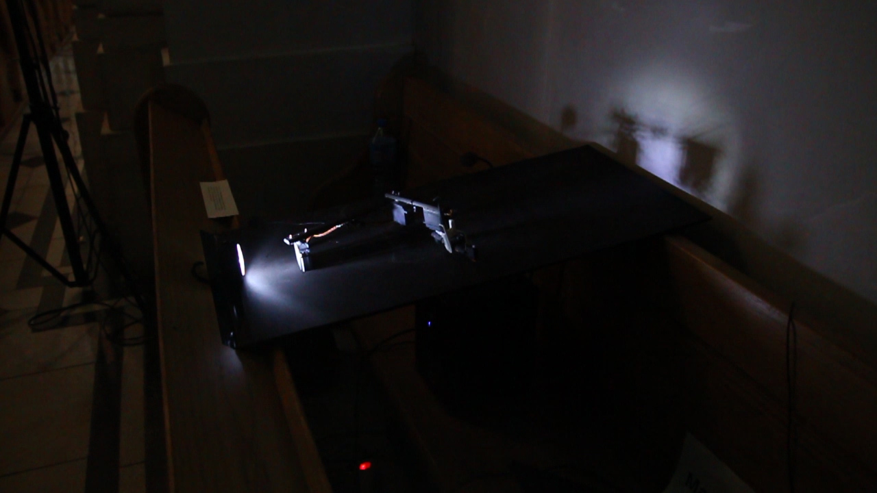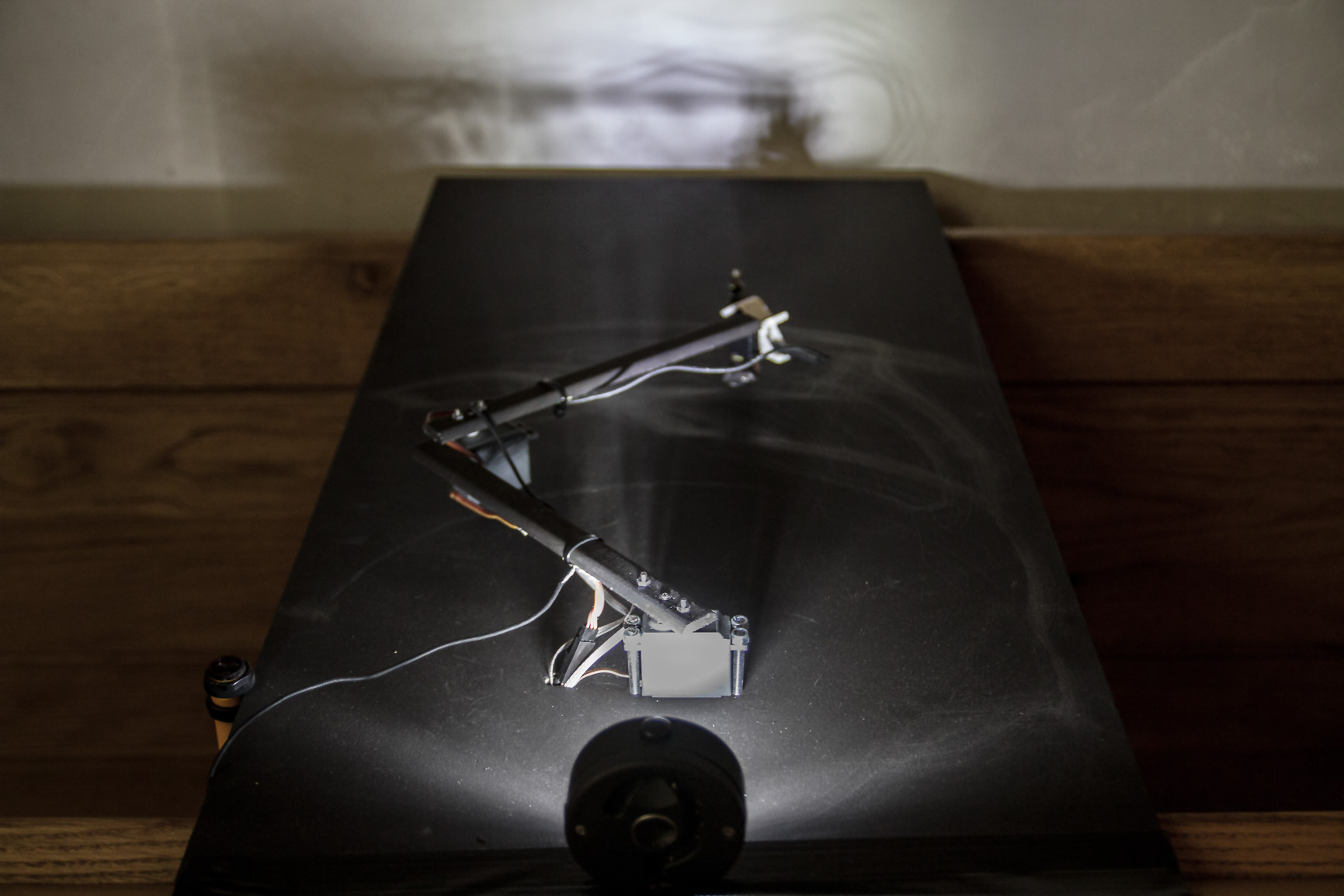 Serwomechnizmy, czujnik odległości, układ elektroniczny, mikrofon kontaktowy, drewno, metal (2016)