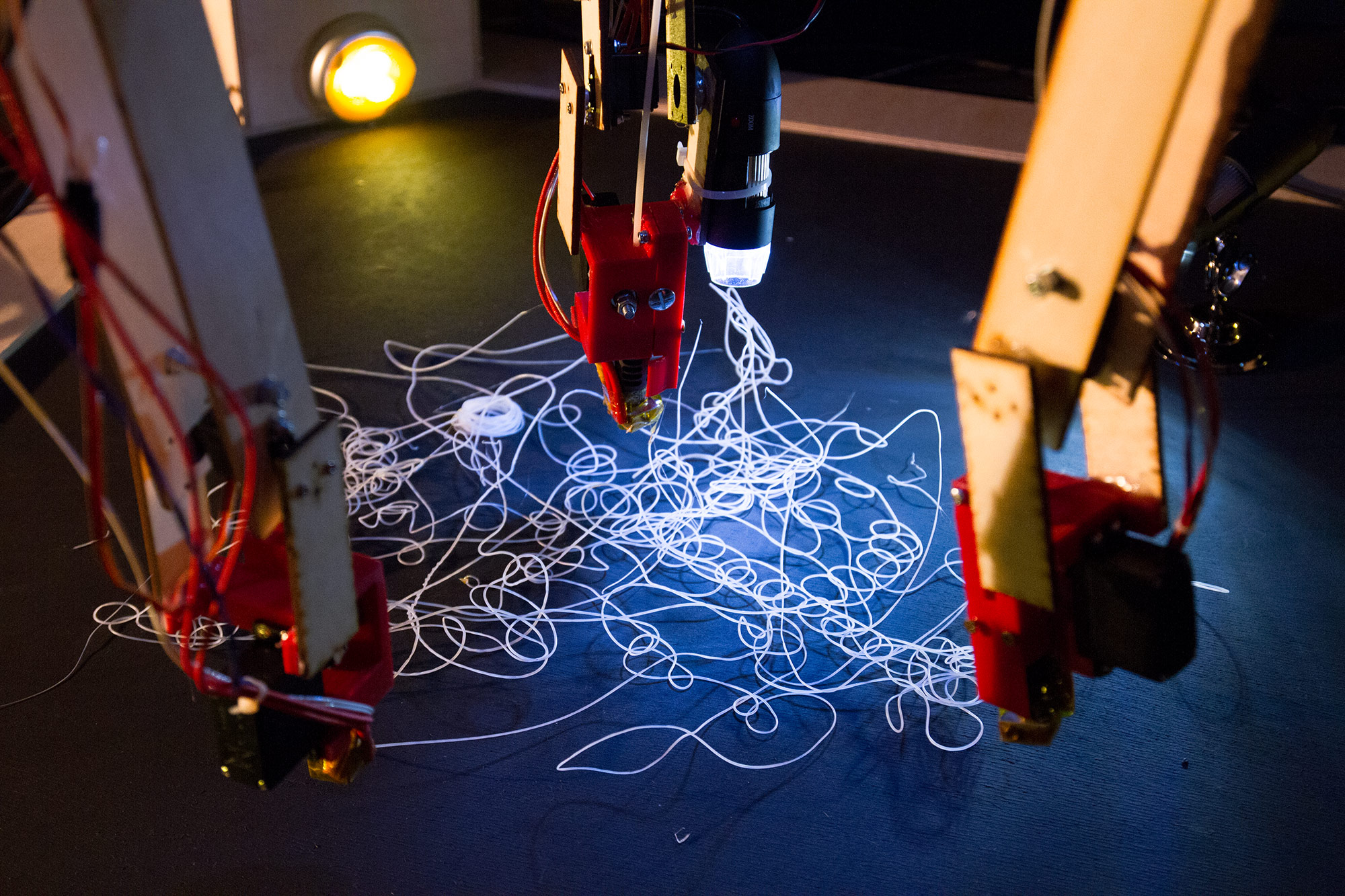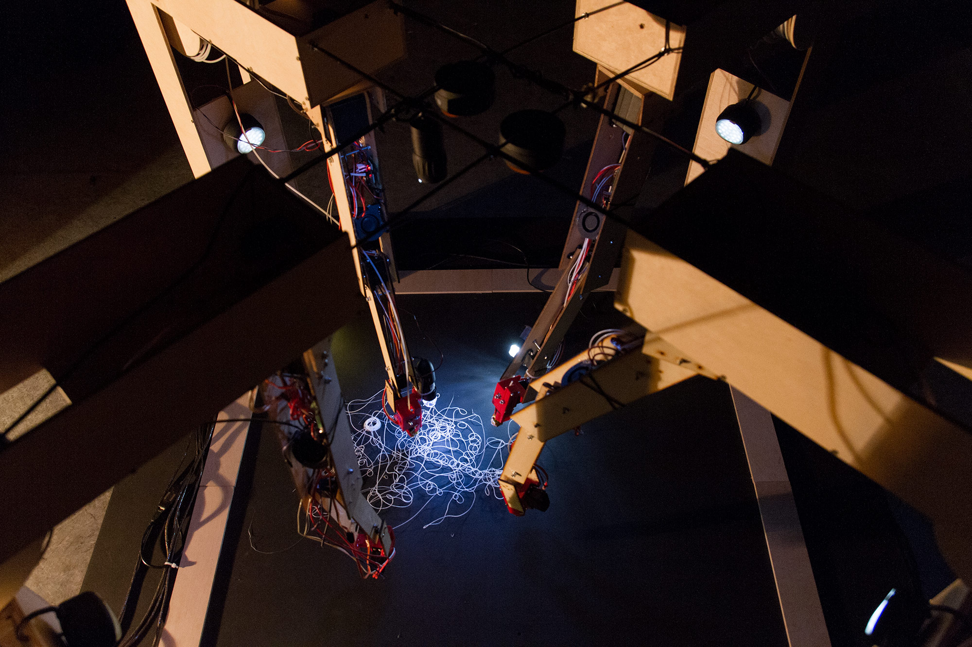 Instalacja Kreska (2014) to magisterska praca dyplomowa obroniona na Wydziale Intermediów Akademii Sztuk Pięknych w Krakowie, na kierunku Intermedia w Pracowni Sztuki Performance prof. Artura Tajbera z dodatkową opieką Katedry Obszarów Sztuki prof. ASP, dr hab. Grzegorza Bilińskiego oraz prof. Marka Chołoniewskiego. Artystyczna część pracy do instalacja stworzona do budowania obiektu rysunkowego poprzez analizę przestrzeni. Monitoruje ona otoczenie i przetwarza dane na instrukcje sterujące grupą czterech mechanicznych rysujących ramion. Dane z odczytu interpretowane są na linie utrwalane w przestrzeni przy użyciu technologii druku 3D. Cały proces działania instalacji oparty jest o idee technologicznego zapośredniczenia tradycyjnego procesu rysowania. Dane wejściowe pochodzą z przestrzeni, w której jest zainstalowana oraz od odbiorcy traktowanego w tej sytuacji jak pozujący model. Dane te są przetwarzane przez reguły (algorytmy). Efektem tego przetworzenia jest wykonanie przez ramiona obiektu rysunkowego, zbudowanego w technice druku 3D, jako wyniku 24 godzinnego procesu. To abstrakcyjny, przestrzenny zapis doby (pejzaż) oraz zapis parametrów człowieka (quasi-akt). Parametry i ruch człowieka oraz warunki atmosferyczne (zewnętrzne) jak i te w pomieszczeniu (wewnętrzne) sterują procesem.