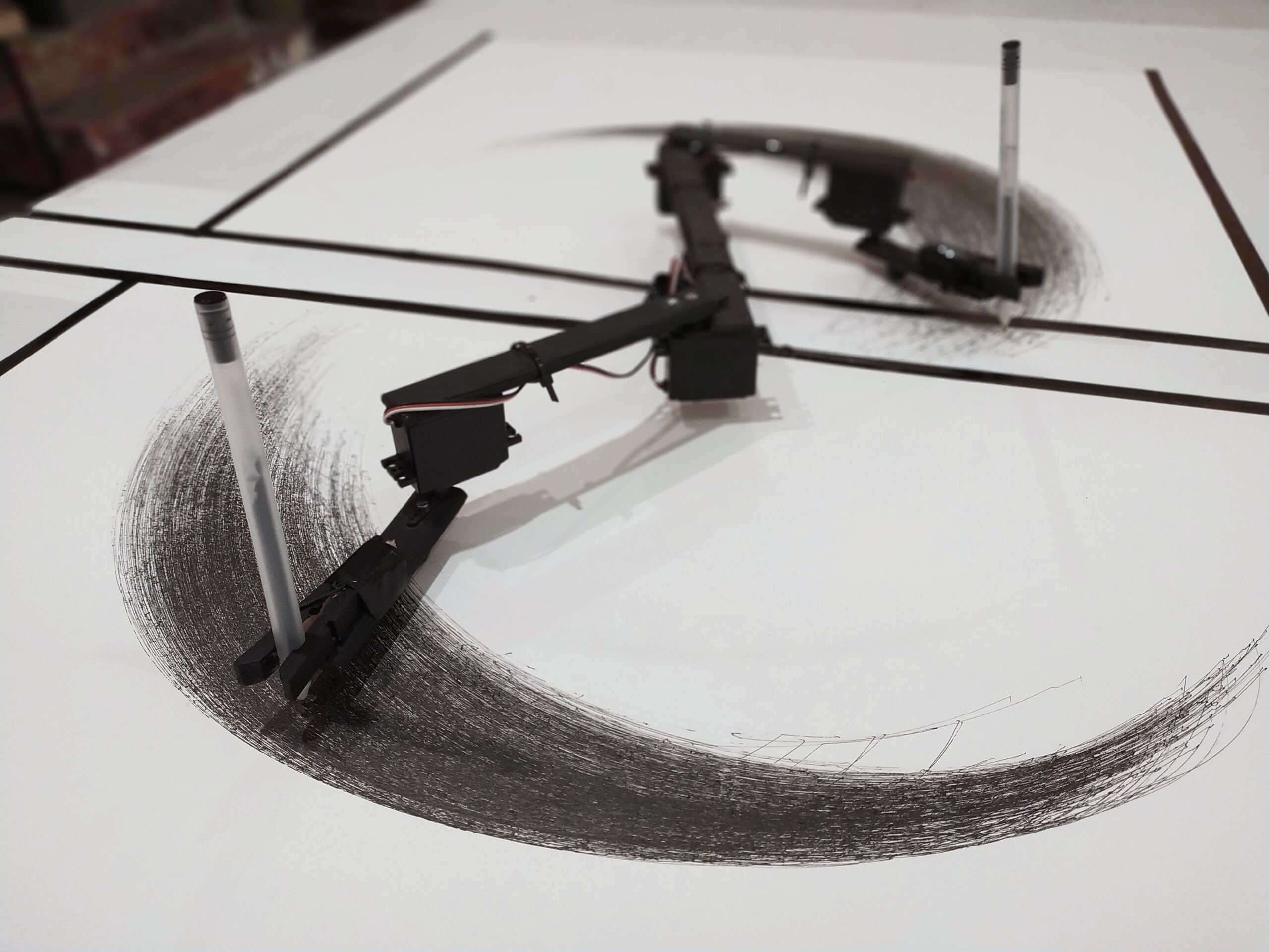 Ramiona robota, interfejs do pomiaru ruchu klatki piersiowej, układy elektroniczne, algorytm sterujący, dane o ludzkim oddechu, papier, drewno (2020)